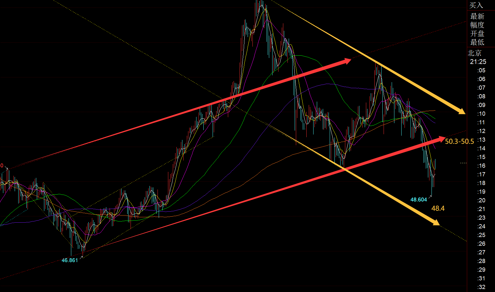 沉点寄望白色通道上轨,它是大阳回踩的618朋分处,不承认的就当飘过就行;高位大区间关心54.4-47.5;【文章概念仅供参考,今日再次试探了一次4020摆布,